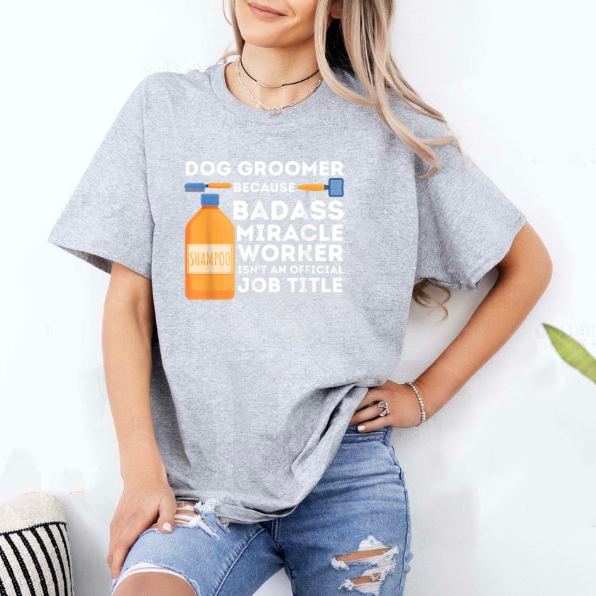 Comfy, casual, and always in style, this Badass Miracle Worker Dog Groomer T-Shirt T-shirt is perfect for daily wear or easy gifting.