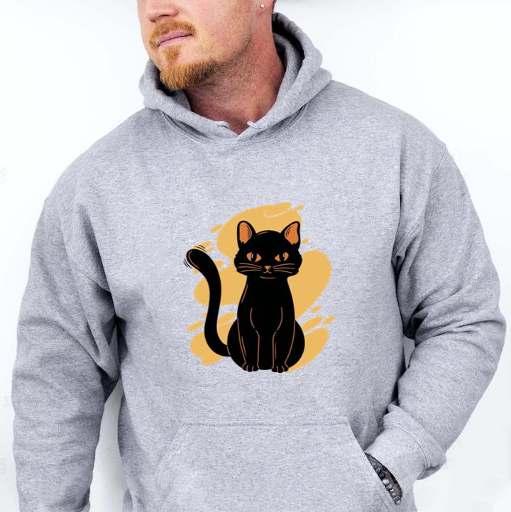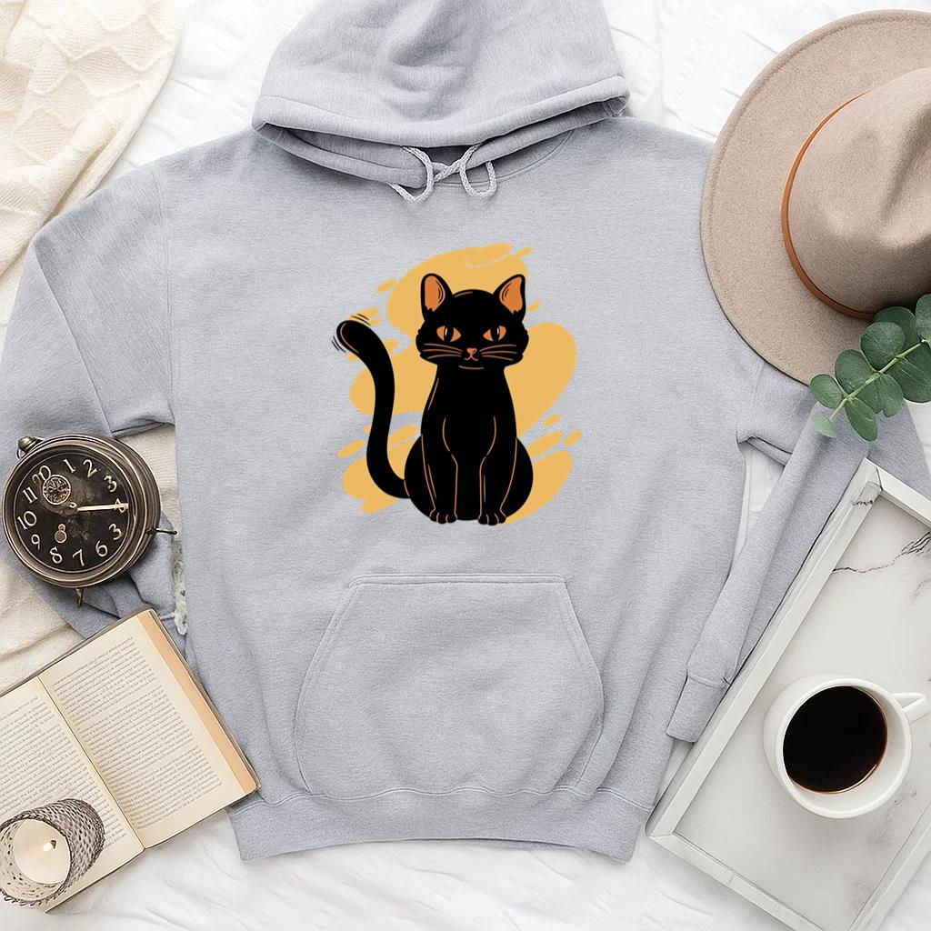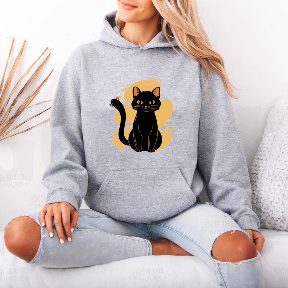 The Black Cat Sitting Yellow Background Hoodie hoodie combines comfort warmth and style for a go anywhere piece that works in any season. Soft inside and durable outside it is perfect for layering or lounging