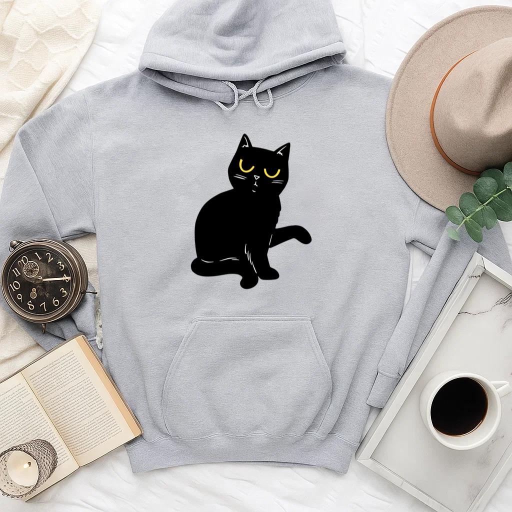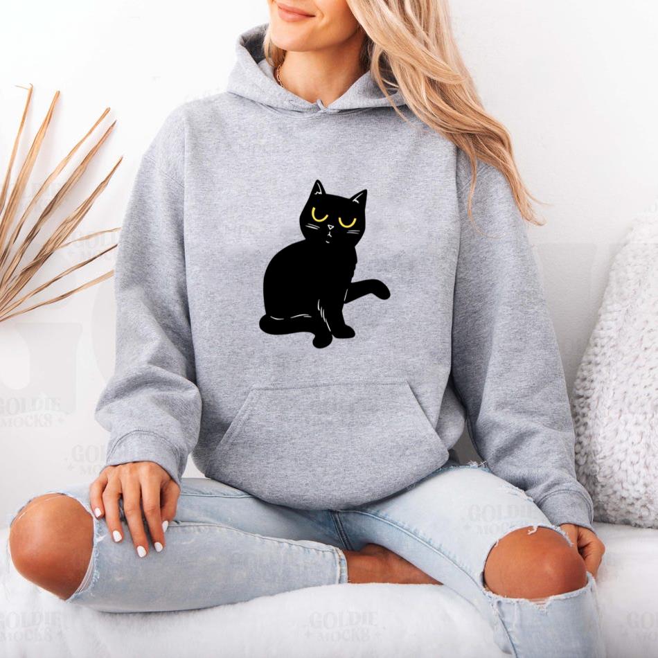 The Black Cat With Yellow Eyes Sitting Hoodie hoodie combines comfort warmth and style for a go anywhere piece that works in any season. Soft inside and durable outside it is perfect for layering or lounging