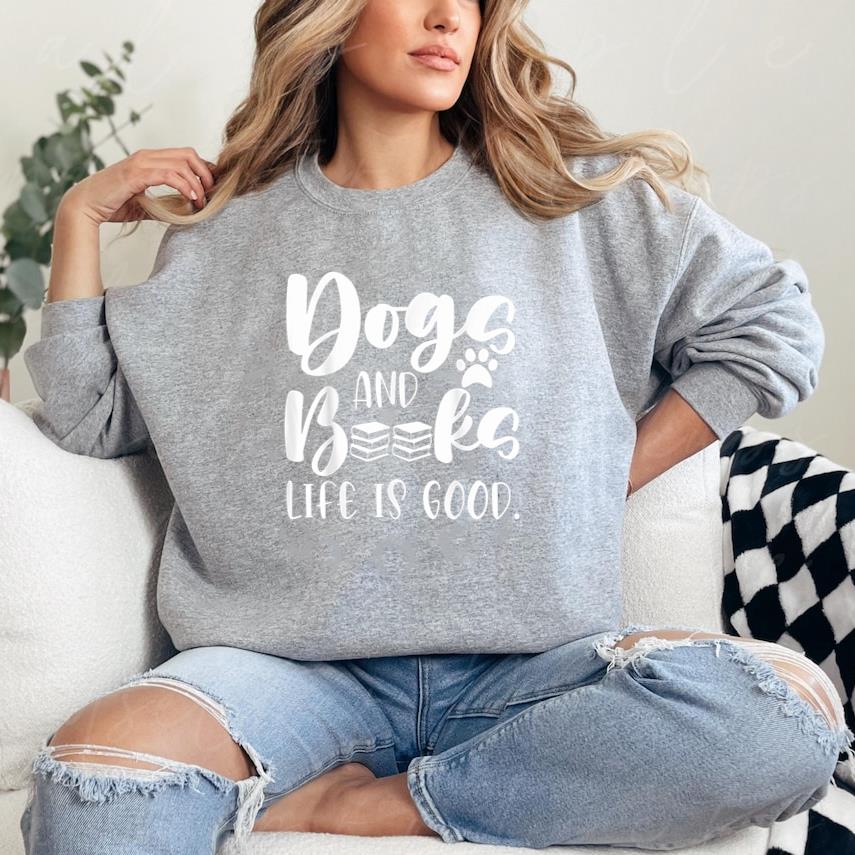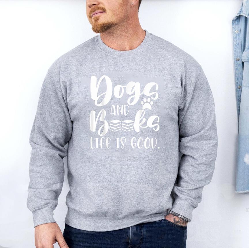 Stay cozy and casual with the Books And Dogs Life Is Good Sweatshirt sweatshirt. Crafted from soft heavy blend fabric it is perfect for layering or lounging any time of year