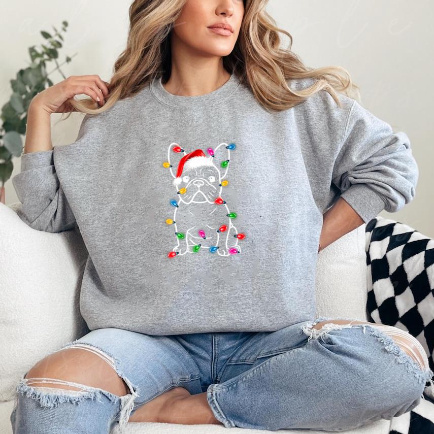 Stay cozy and casual with the Christmas Lights Dog French Bulldog Sweatshirt sweatshirt. Crafted from soft heavy blend fabric it is perfect for layering or lounging any time of year