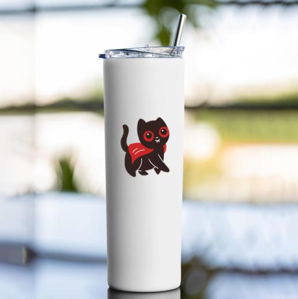 Keep your drinks hot or cold with the Cute Black Cat With Red Eyes And A Red Cape Tumbler tumbler. Made for daily use at home work or on the go this insulated tumbler is your new favorite companion