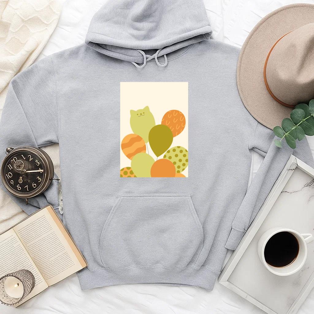 The Cute Cat Balloon Design Hoodie hoodie combines comfort warmth and style for a go anywhere piece that works in any season. Soft inside and durable outside it is perfect for layering or lounging