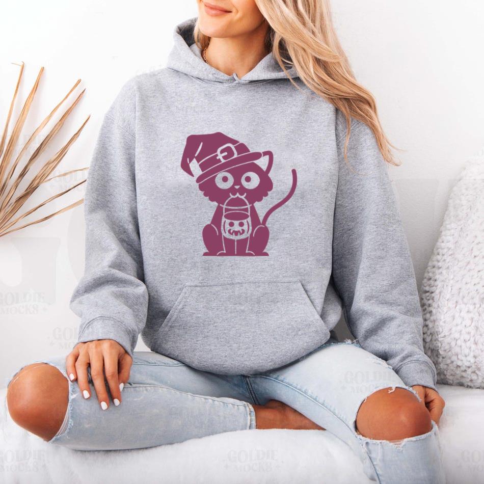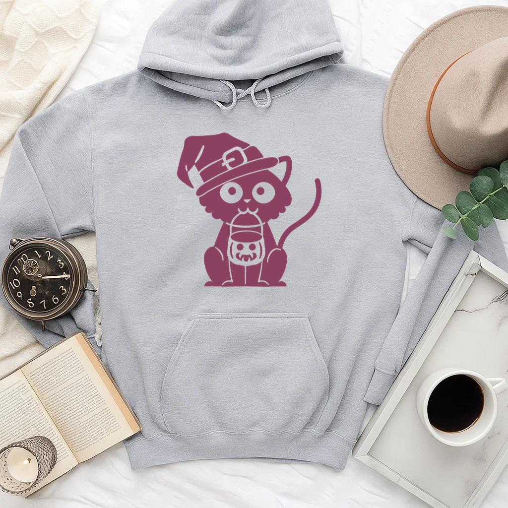 The Cute Witch Cat Trick Or Treat Hoodie hoodie combines comfort warmth and style for a go anywhere piece that works in any season. Soft inside and durable outside it is perfect for layering or lounging