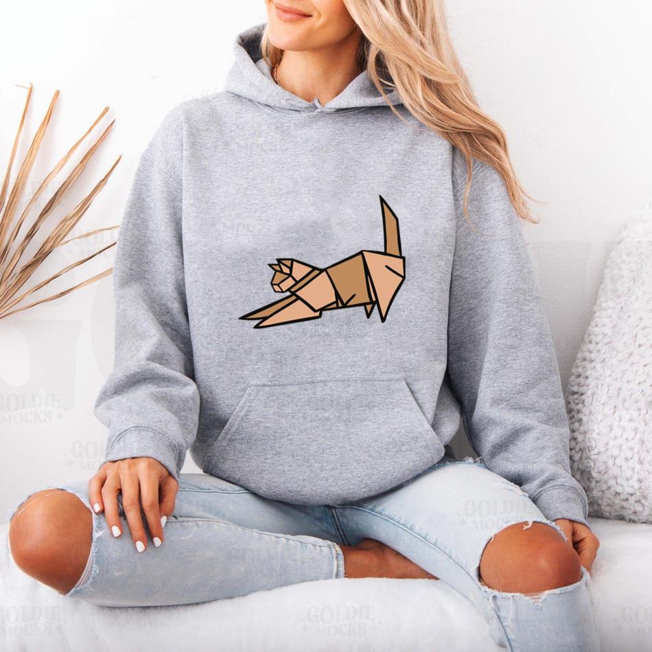 The Origami Cat Illustration Hoodie hoodie combines comfort warmth and style for a go anywhere piece that works in any season. Soft inside and durable outside it is perfect for layering or lounging