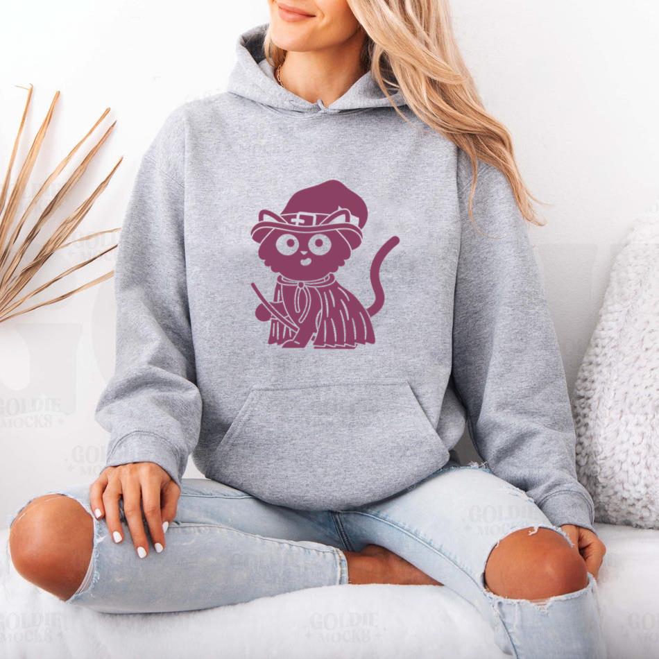 The Purple Cat With Witchs Hat And Broom Hoodie hoodie combines comfort warmth and style for a go anywhere piece that works in any season. Soft inside and durable outside it is perfect for layering or lounging