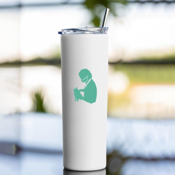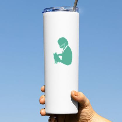 Keep your drinks hot or cold with the Silhouette Of A Veterinarian Holding A Cat In Green Tumbler tumbler. Made for daily use at home work or on the go this insulated tumbler is your new favorite companion